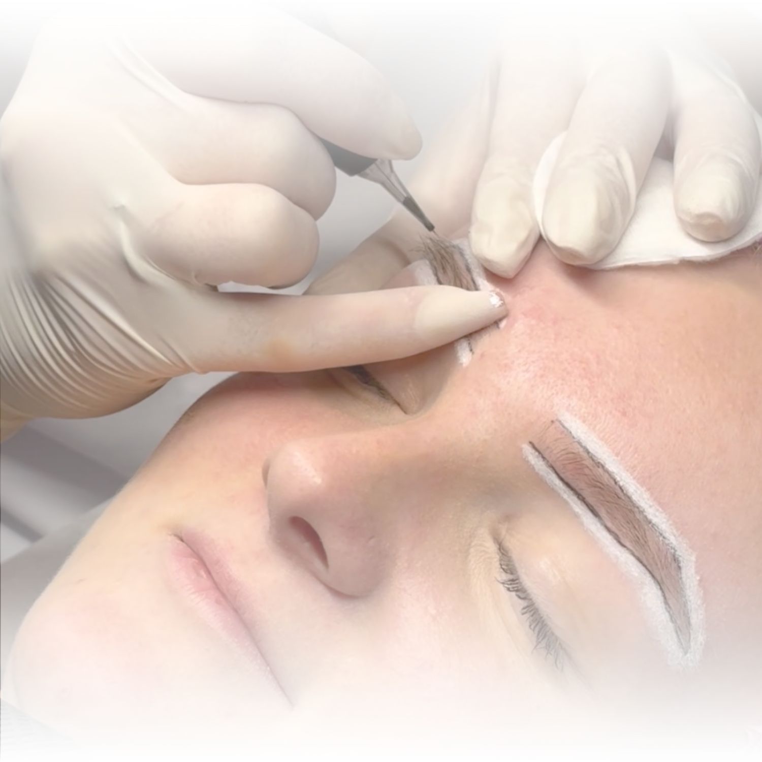 Die Brauen werden präzise vermessen und vorgezeichnet, um ein symmetrisches und harmonisches Ergebnis zu garantieren.
